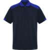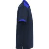 Рубашка-поло с коротким рукавом в двухцветной комбинации. Воротник и половина рукава отделана рибом 1x1. Планка на 2 пуговицы. Усиленные закрытые швы по воротнику. Боковые разрезы внизу. Контрастные плечи и детали. Дополнительный контрастный карман.
