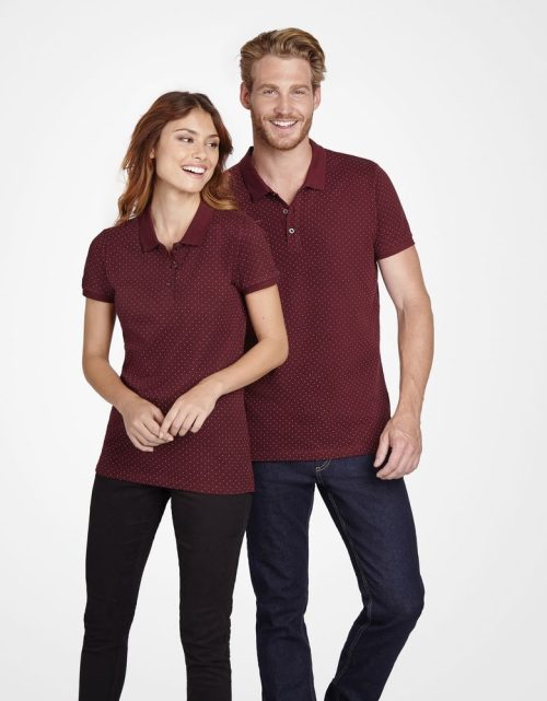 Кроеная (с боковыми швами) рубашка поло с печатным рисунком. Воротник с укрепляющей тесьмой и манжеты в рубчик, планка с 3 пуговицами тон в тон, боковые разрезы снизу.