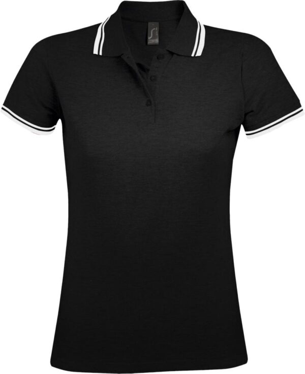 Рубашка поло женская Pasadena Women 200 с контрастной отделкой, черная с белым с логотипом купить оптом в Москве по низкой цене | Интернет-магазин Сувенирная продукция и мерч с логотипом компании на заказ в Москве - Идеальные подарки клиентам | TairGifts