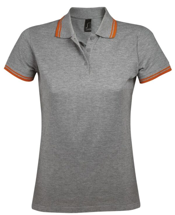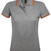 Рубашка поло женская Pasadena Women 200 с контрастной отделкой, серый меланж с оранжевым с логотипом купить оптом в Москве по низкой цене | Интернет-магазин Сувенирная продукция и мерч с логотипом компании на заказ в Москве - Идеальные подарки клиентам | TairGifts