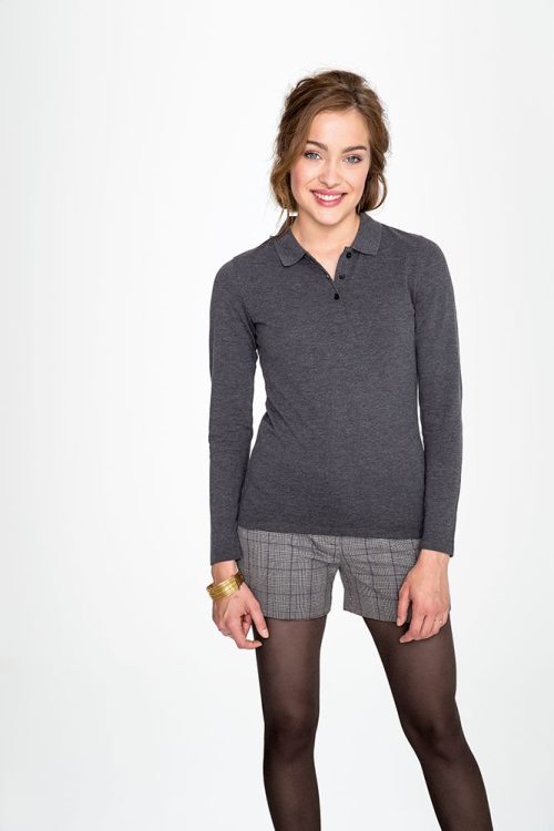 Рубашка поло женская с длинным рукавом Perfect LSL Women, светло-серый меланж