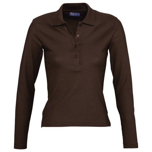 Рубашка поло женская с длинным рукавом Podium 210 шоколадно-коричневая