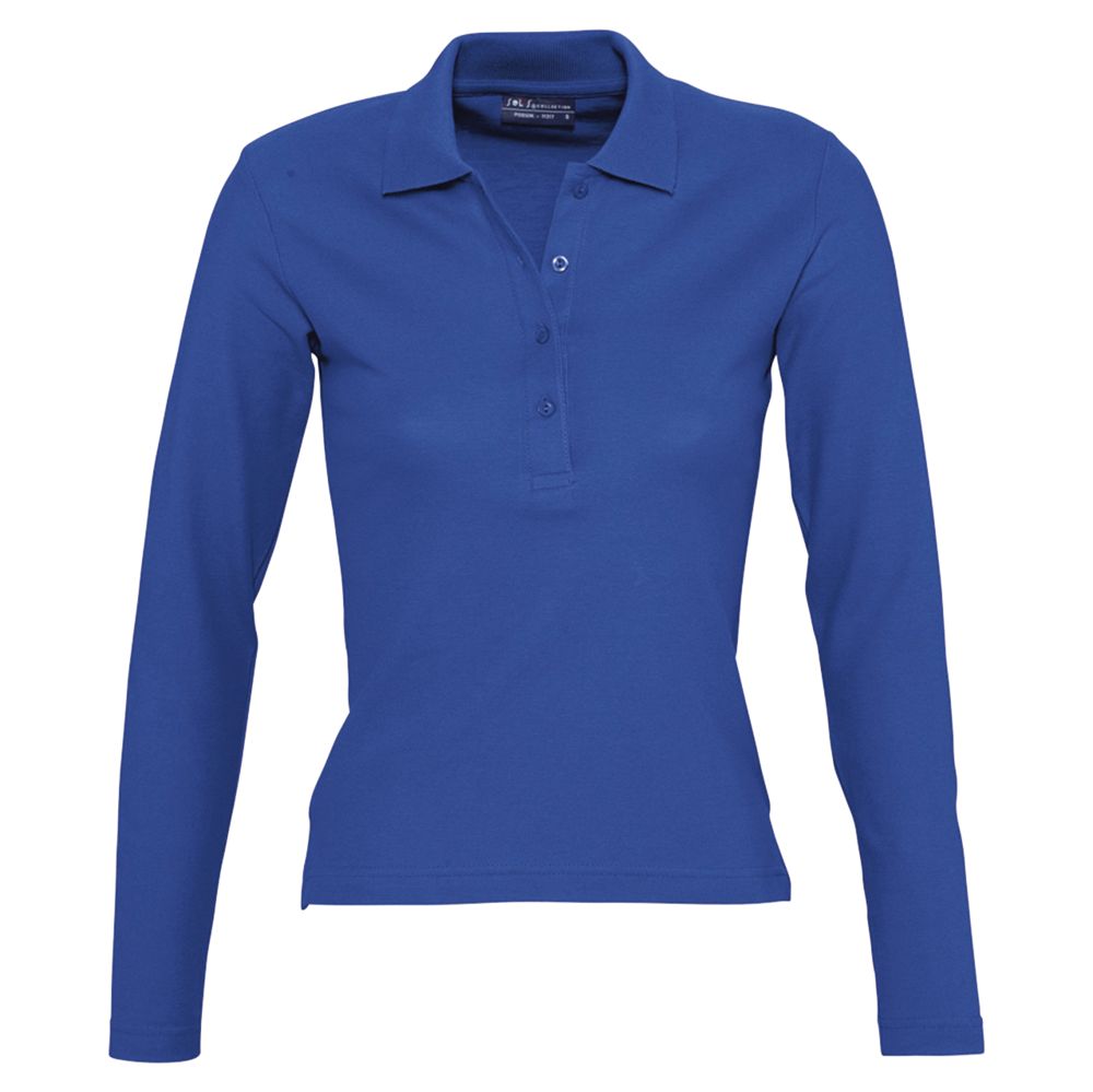 Рубашка поло женская с длинным рукавом Podium 210 ярко-синяя