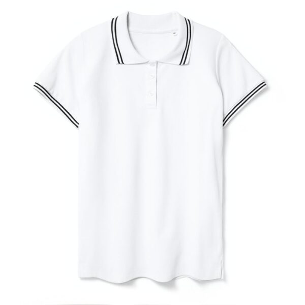 Женская рубашка поло приталенного силуэта с контрастными деталями.