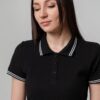 Женская рубашка поло приталенного силуэта с контрастными деталями.