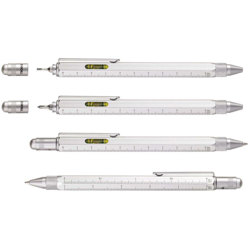 Ручка шариковая Construction, мультиинструмент, серебристая