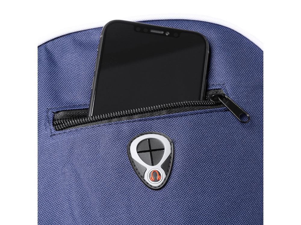Небольшой рюкзак с регулируемыми лямками. Верхняя ручка. Передний карман на молнии. Боковые карманы из микроперфорированной ткани. Выход для наушников.