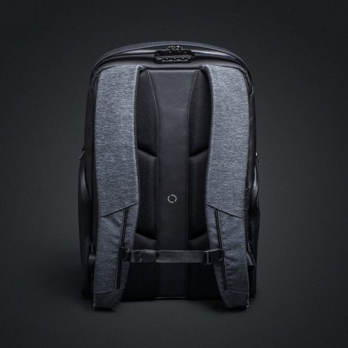 В конструкции рюкзака все продумано до мелочей: от комбинации высокопрочных, устойчивых к порезам и трению водоотталкивающих материалов до специального кармана для аккумулятора, в который выведен USB-кабель, соединенный с портом на внешней стороне рюкзака для легкого подключения к смартфону. Рюкзак закрывается на водонепроницаемую молнию, которую можно зафиксировать с помощью кодового замка.