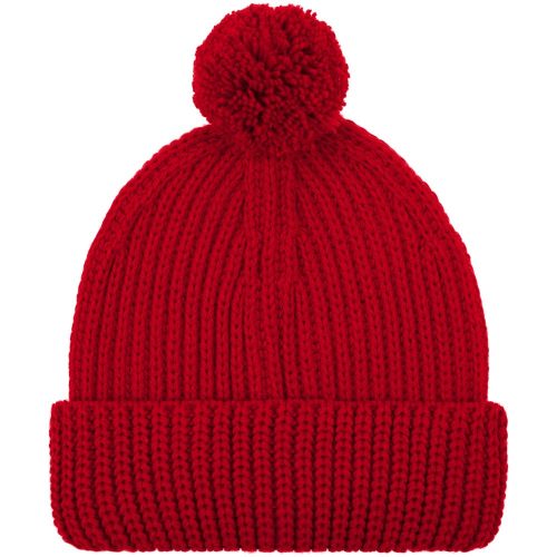 Однослойная шапка из высокообъемной пряжи с помпоном.