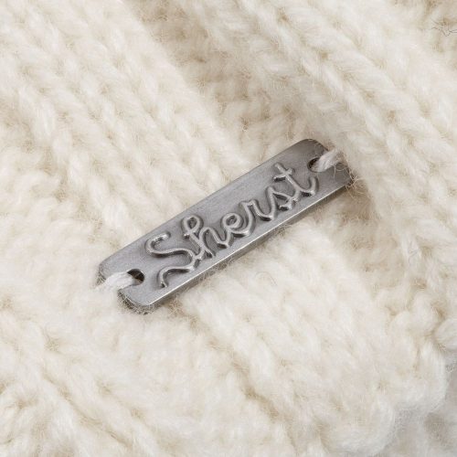 Металлический шильд с названием бренда расположен у заднего шва шапки. Это оставляет место спереди для пришива лейбла или шильдика с логотипом заказчика.