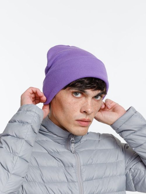 Двухслойная шапка из акриловой пряжи с регулируемым отворотом 7–10 см.