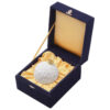 Игрушка упакована в изысканный подарочный футляр, обитый синим бархатом, что подчеркивает её ценность и делает готовым презентом для коллег и партнеров.