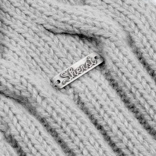 Металлический шильд с названием бренда расположен по нижнему краю изделия, что оставляет достаточно места для пришива лейбла или шильда с логотипом заказчика.