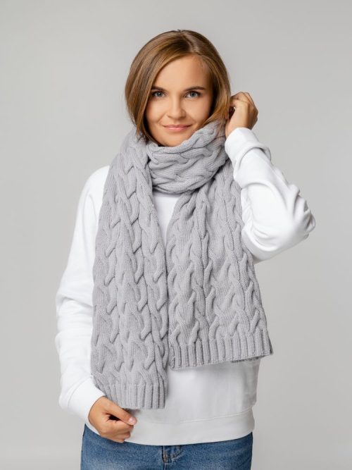 Однослойный шарф фактурной вязки с объемными косами.