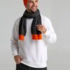 Двухслойный шарф фактурной вязки с контрастной отделкой.