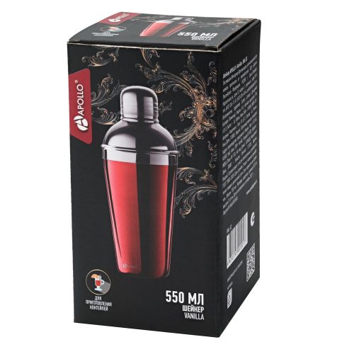 Яркий шейкер для приготовления алкогольных и безалкогольных коктейлей и других смешанных напитков, например, холодного кофе фраппе или спортивного питания с протеином. Выполнен из нержавеющей стали и снабжен ситечком для фильтрации.Емкость 550 мл.