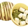 Состав: сфера из белого шоколада, чай матча, маршмеллоу.