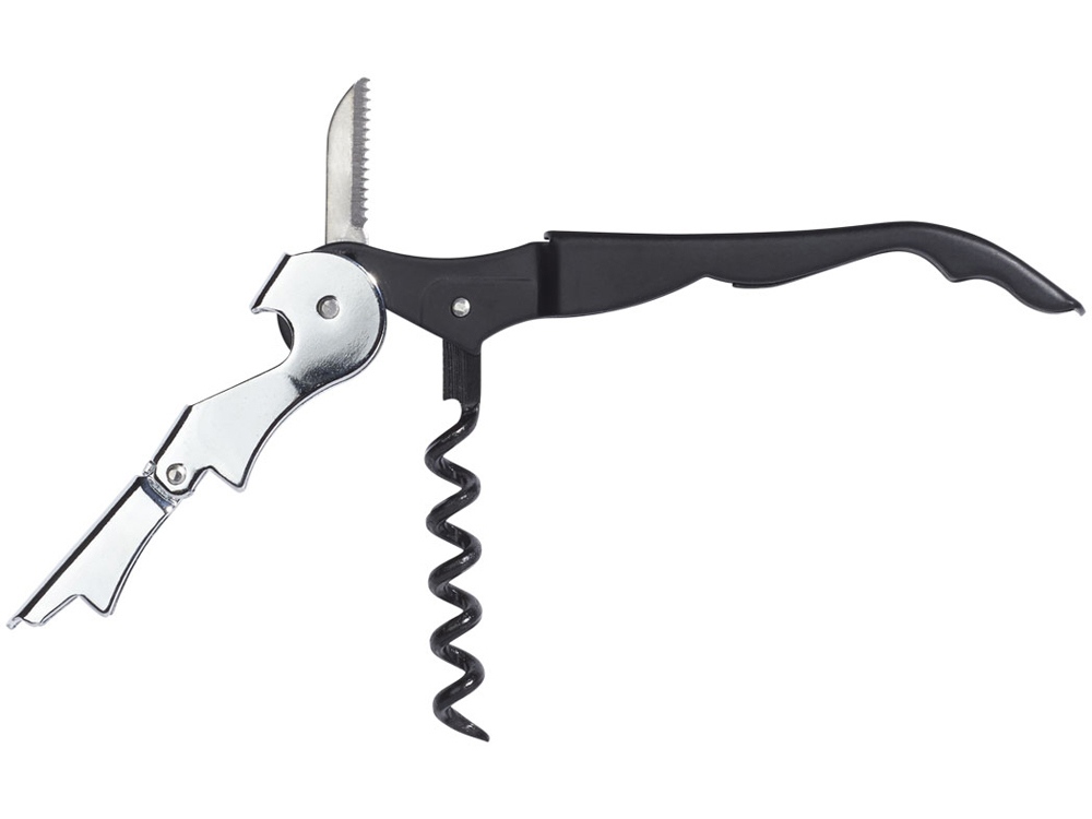 Штопор с буравчиком, открывалкой для бутылок и ножом для срезания фольги. Нержавеющая сталь. Гравировка (оптоволоконный лазер) (Без чернения) на данный товар осуществляется бесплатно. Оплачивается только настройка оборудования в размере 1000 рублей на весь тираж.