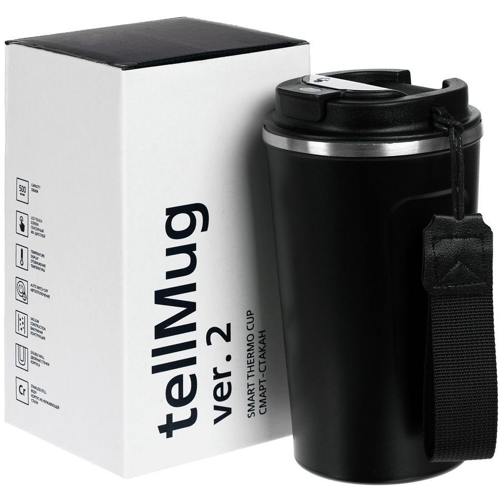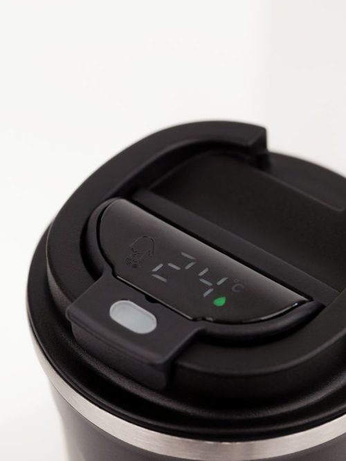 Умный термостакан tellMug показывает температуру напитка на сенсорном ЖК-дисплее — точные данные собирает встроенный в крышку датчик.