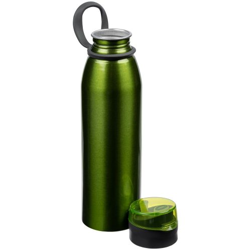 Легкая бутылка для спорта с откидной крышкой и силиконовой петлей для транспортировки.