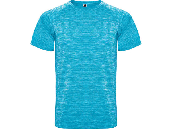 Спортивная футболка из полиэстерового полотна с рукавом реглан. Круглый вырез горловины. Легко сохнущее дышащее полотно с красивым меланжевым эффектом.