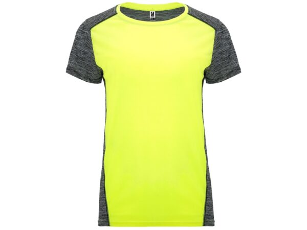 Футболка с коротким рукавом из технологического полотна. Круглый вырез горловины. Комбинация двух полиэстеровых полотен. Основное полотно на полочке со структурой, дополнительное полотно на спинке, рукавах и плечах с меланжевым эффектом. Задняя часть немного длиннее. Легко сохнущее дышащее полотно.