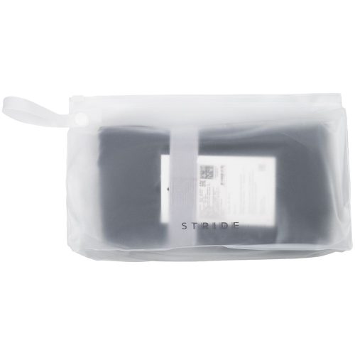Полотенце упаковано в непромокаемую сумочку, которую можно использовать в качестве несессера для шампуней и купальных принадлежностей.