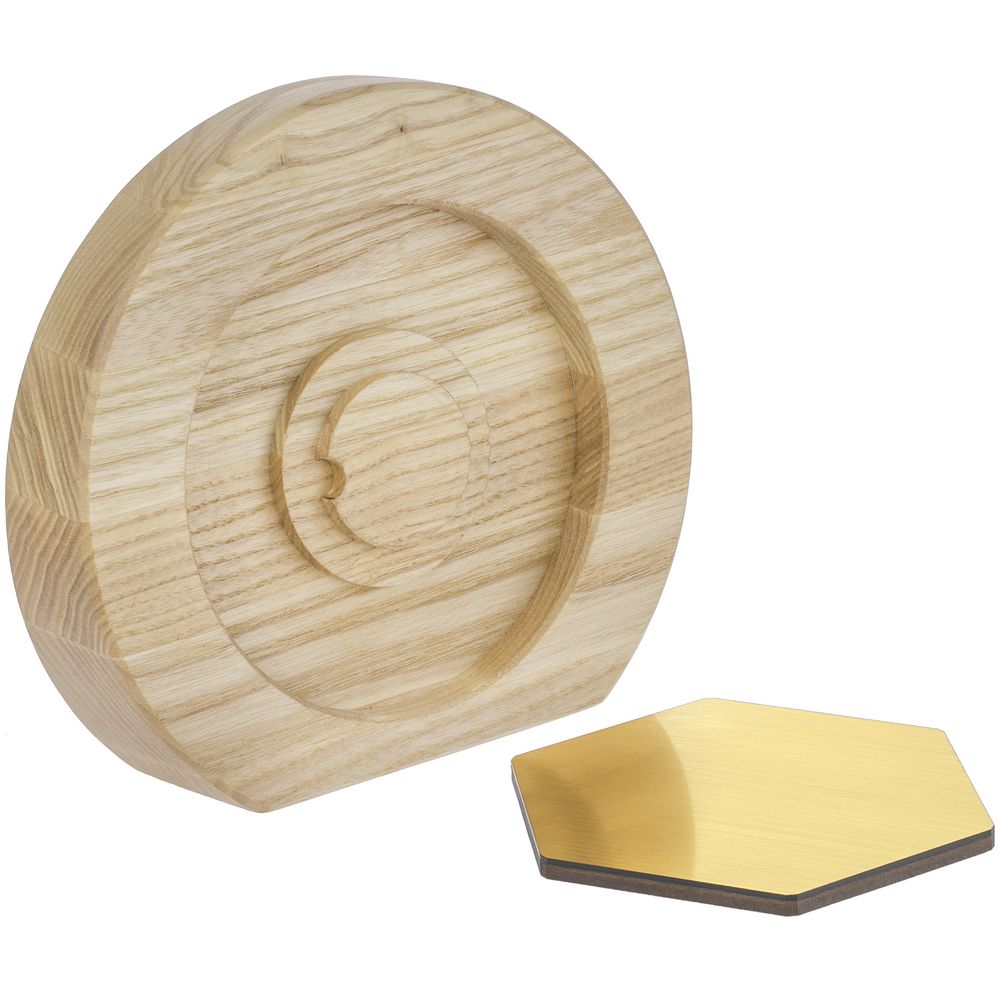 Вставка со звездой из зеркального пластика на деревянной основе крепится на приподнятое основание внутри стелы, что создает объем и многослойность награды. На вставке предусмотрен клеевой слой для крепления после нанесения.
