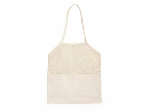 Эко-сумка для фруктов из 100% хлопка натурального цвета с ручками длиной 60 см. 180 г/м2. Половина сумки из мягкого материала, половина из сетки.
