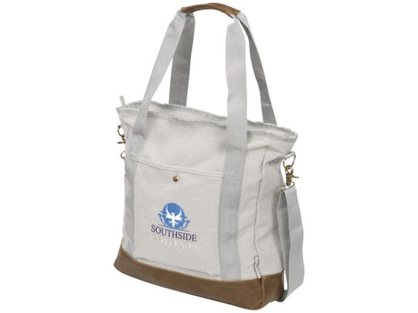 Сумка-тоут Harper из хлопчатобумажной парусины с застежкой-молнией. В этой модной хлопчатобумажной сумке-тоут с застежкой-молнией есть открытое основное отделение с узором и удобный передний карман с кнопкой-застежкой. Низ с виниловыми вставками и ручки для переноски. Ремень для тележки сзади. Регулируемый плечевой ремень. Входит в коллекцию сумок из хлопчатобумажной парусины Field & Co.® Harper. Хлопчатобумажная парусина.