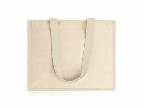 Сумка из ламинированного джута с длинными ручками и хлопковыми боковыми сторонами. Идеально подходит для нанесения.