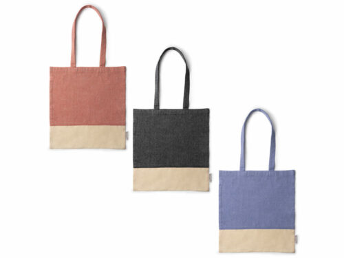 Сумка из переработанного хлопка с отделкой из натурального хлопка плотностью 120 г/м². Усиленные ручки длиной 70 см.