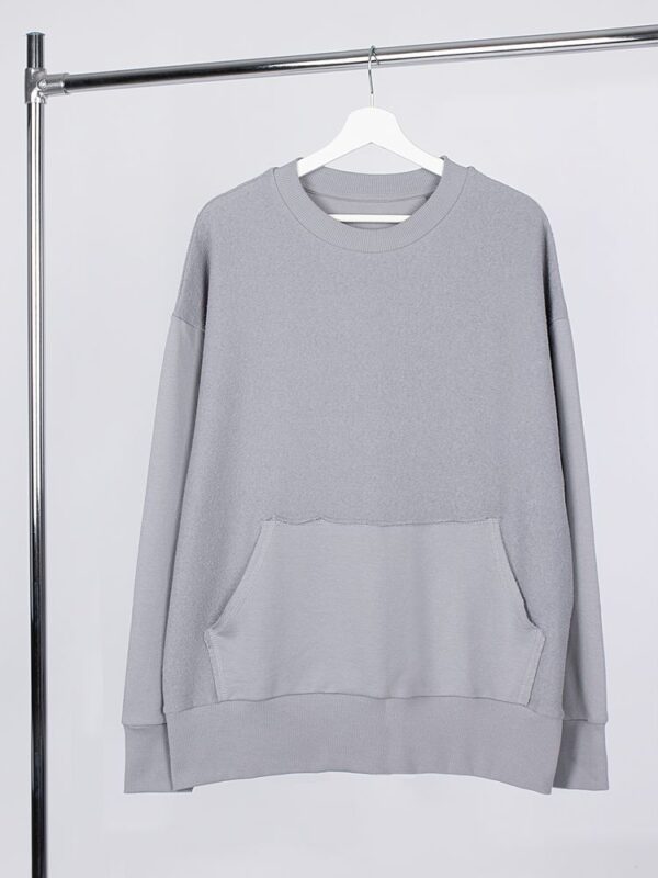 Благодаря особой конструкции, где часть деталей — перед и спинка — вывернута наизнанку, свитшот приобретает запоминающийся вид. Так внутренняя, обычно незаметная сторона материала превращается в лицевую: миниатюрные петельки бывшей изнанки становятся настоящим украшением толстовки, добавляя ей оригинальности и эффект невероятно приятной плюшевости. Просто нужна как Vozduh, — эта линейка одежды станет глотком свежего воздухав повседневном гардеробе. Необработанные края изделий отражают динамику воздушной стихии, а свободный крой напоминает о легкости самого приятного дуновения.