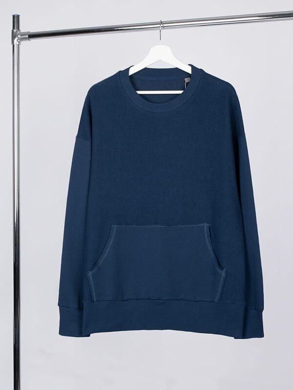 Благодаря особой конструкции, где часть деталей — перед и спинка — вывернута наизнанку, свитшот приобретает запоминающийся вид. Так внутренняя, обычно незаметная сторона материала превращается в лицевую: миниатюрные петельки бывшей изнанки становятся настоящим украшением толстовки, добавляя ей оригинальности и эффект невероятно приятной плюшевости. Просто нужна как Vozduh, — эта линейка одежды станет глотком свежего воздухав повседневном гардеробе. Необработанные края изделий отражают динамику воздушной стихии, а свободный крой напоминает о легкости самого приятного дуновения.
