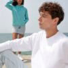 Свитшот унисекс из хлопка и переработанного полиэстера с круглым вырезом и втачным рукавом.