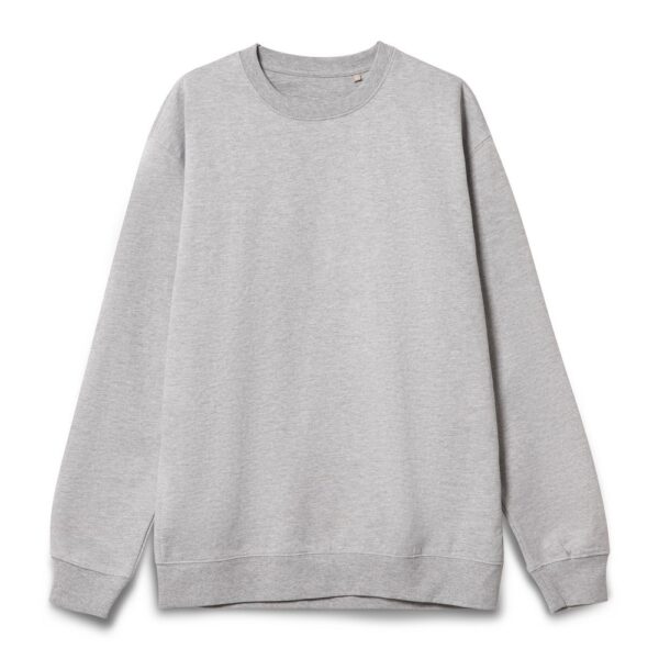 Свитшот унисекс из хлопка и переработанного полиэстера с круглым вырезом и втачным рукавом.