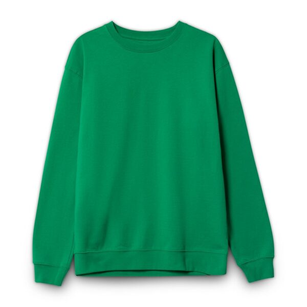 Свитшот унисекс из хлопка и переработанного полиэстера с круглым вырезом и втачным рукавом.