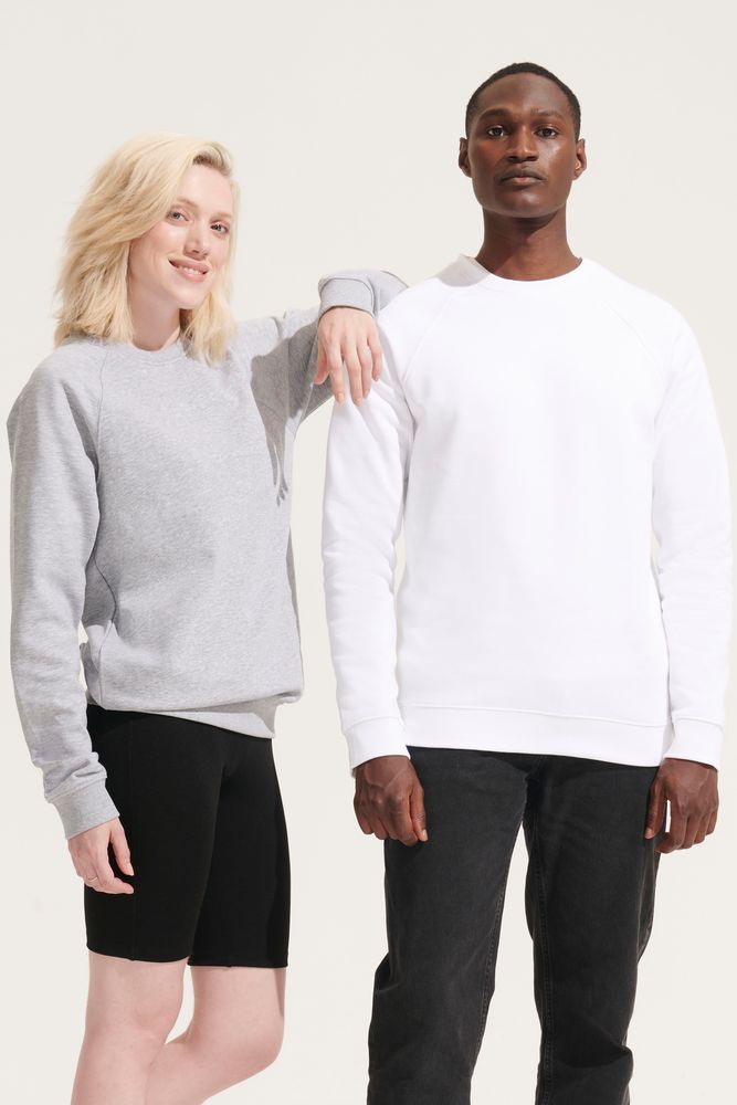 Свитшот унисекс из органического хлопка с круглым вырезом и рукавами-реглан. Лейбл производителя в боковом шве изнутри, в шве горловины — только бирка с размером, что позволяет удобно нанести свой логотип.