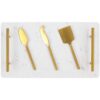 Золотистый цвет ручек и трех ножей подчеркивает статус всего набора и возвышенность самой сырной дегустации. При нарезке мягких сортов сыра особенно важно сохранить эстетичный вид ломтиков, поэтому здесь не обойтись без специальных ножей. Нож-лопатка удобен как для нарезки, так и для сервировки мягких и полутвердых сортов, а еще им можно красиво раскрошить твердый сыр. А нож с раздвоенным кончиком можно также использовать в качестве элегантной вилки. Листовидный нож для твердых сортов — это проверенная классика, которой можно доверить пармезан.