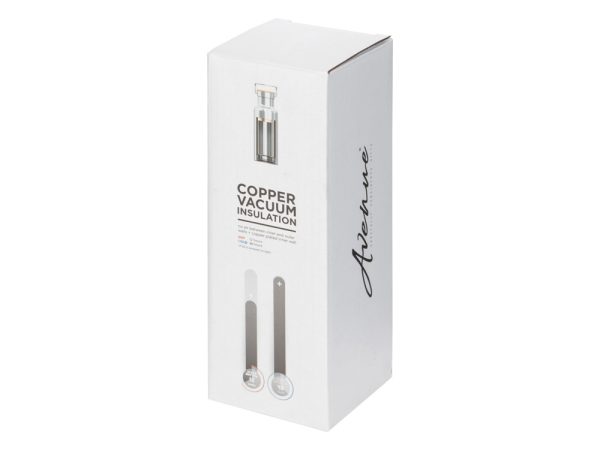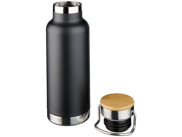 Медная спортивная бутылка с вакуумной изоляцией Thor объемом 480 мл. Не содержащая пластика бутылка из нержавеющей стали. Двустенная вакуумная конструкция из нержавеющей стали с медной изоляцией позволит вашему напитку оставаться холодным в течение 48 часов и горячим — как минимум 12 часов. Кроме того, конструкция препятствует образованию конденсата на внешней стороне бутылки. Закручивающаяся крышка с деревянной деталью. Современное, долговечное покрытие из порошкового материала. Объем — 480 мл. Упакована в коробке Avenue. Нержавеющая сталь. Гравировка (CO2 лазер) (Без чернения) на данный товар осуществляется бесплатно. Оплачивается только настройка оборудования в размере 1000 рублей на весь тираж.