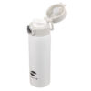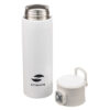 • Конструкция крышки позволяет открывать термокружку в одно касание и одной рукой – достаточно нажать на кнопку, верхняя крышка откинется на 180 градусов и автоматически зафиксируется в открытом положении.