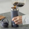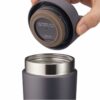Теплосбережению способствует крышка-пробка, которая легко и быстро открывается и закрывается. Чтобы термостакан было удобно носить в руке или прикрепить к сумке или рюкзаку, предусмотрена прочная ручка с надёжным креплением к крышке-пробке. Ручка поворачивается в обе стороны и в сложенном положении интегрируется в плоскость крышки.