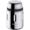 Стальной вакуумный термос для еды со складной ложкой. В нем любимые блюда не соприкасаются с пластиком и остаются горячими надолго.