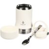 Tabenodo — универсальный многофункциональный термос для работы, школы, похода и путешествия. В компактном корпусе разместились ложка, тарелка и емкость для любимого блюда. Матовая поверхность приятна на ощупь, а силиконовая ручка удобна для переноски.