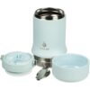 Tabenodo — универсальный многофункциональный термос для работы, школы, похода и путешествия. В компактном корпусе разместились ложка, тарелка и емкость для любимого блюда. Матовая поверхность приятна на ощупь, а силиконовая ручка удобна для переноски.