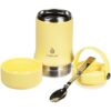 Tabenodo — универсальный многофункциональный термос для работы, школы, похода и путешествия. В компактном корпусе разместились ложка, тарелка и емкость для любимого блюда. Матовая поверхность приятна на ощупь, а силиконовая ручка удобна для переноски.