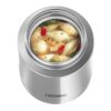 Благодаря инновационной технологии вакуумной термоизоляции, разработанной производителем, блюда в термосе остаются горячими в течение 9 часов, а холодными – не менее 18 часов. Корпус и колба изготовлены из пищевой коррозионностойкой стали 18/8 AISI 304 Stainless Steel, отличающейся прочностью, термостойкостью и долговечностью. Сталь не вступает в химические реакции с содержимым и не влияет на вкус блюд. Усиленное основание корпуса защищает от ударов при случайных падениях.