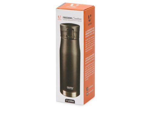 Матовый черный термос с блестящей отделкой дна. Герметичная крышка с откидным механизмом, кнопкой открывания и блокировкой от случайного нажатия защищают термос от проливания, благодаря чему содержимое вашей сумки всегда будет в безопасности с Liberty Canteen. Широкое горлышко позволяет удобно насыпать в термос лед и мыть внутреннюю колбу.
