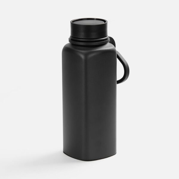 Термос оригинальной четырехгранной формы с надежной ручкой для переноски и удобным клапаном, который открывается и закрывается одним нажатием. Пить можно с любой стороны.