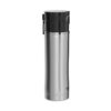 Комфорт в использовании обеспечивается особенностями конструкции термокружки. Её можно открывать и закрывать одной рукой – левой или правой. При нажатии на кнопку, расположенную на фронтальной части крышки-пробки, её верхняя часть автоматически откидывается и фиксируется в открытом положении. Поильник плавной формы с небольшим выливным отверстием позволяет контролировать интенсивность потока жидкости. Блокировочное кольцо защищает от случайного открывания термоса при размещении его в сумке или рюкзаке.